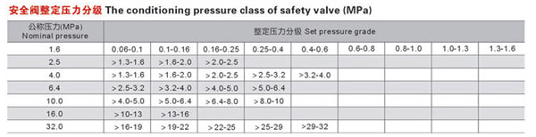 安全閥都有公稱壓力和整定壓力。公稱壓力是指閥體最大允許承受的壓力,如公稱壓力為PN16、PN25、PN40、PN64等;整定壓力是指彈簧在壓力的作用下,達到這個設定的壓力值時,彈簧即頂起閥桿向外泄壓。如整定壓力為0.1Mpa、1.2Mpa、2.2Mpa等。公稱壓力是指的安全閥的耐壓等級,也就是說安全閥最高承受的壓力。而安全閥整定壓力是指安全閥內部達到這個壓力就起跳。整定壓力是可調的,但是整定壓力也存在分級關系,一般是在標準設定的范圍內調整。見下圖安全閥整定壓力分級表: