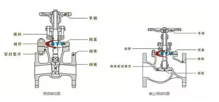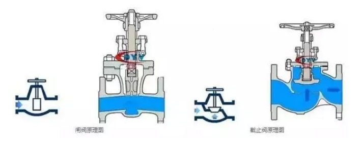截止閥的密封面是閥心的一個小梯形側面(具體看閥心的形狀),一旦閥心脫落,相當于閥門關閉(如果壓差大,當然關不嚴,不過止逆效果還不錯),閘閥是靠閥心閘板的側面來密封,密封效果不如截止閥,閥心脫落也不會像截止閥那樣相當于閥門關閉。