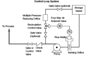 一、設計連續循環系統常開再循環模式是最簡單常見的形式。 在再循環回路中設置手動節流閥, 將手動節流閥設置一固定的開度, 離心泵工作中讓最小流量通過手動節流閥返回到水箱中。
