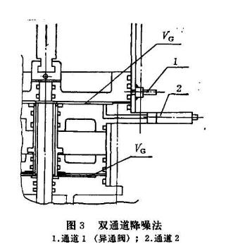 采用異通閥降噪的方法,存在著閥門開啟過程的速度較慢、VG值小較難控制的缺點。但從設(shè)計分析和試驗實踐來看,前者可調(diào)整異通閥進氣阻尼流道截面的大小,達到噪聲與速度相互適應(yīng)的程度。后者可提高制造水平來控制各道加工質(zhì)量,可用調(diào)整墊以獲得較小的 VG值。能滿足這二個條件則此方法是適用的。
